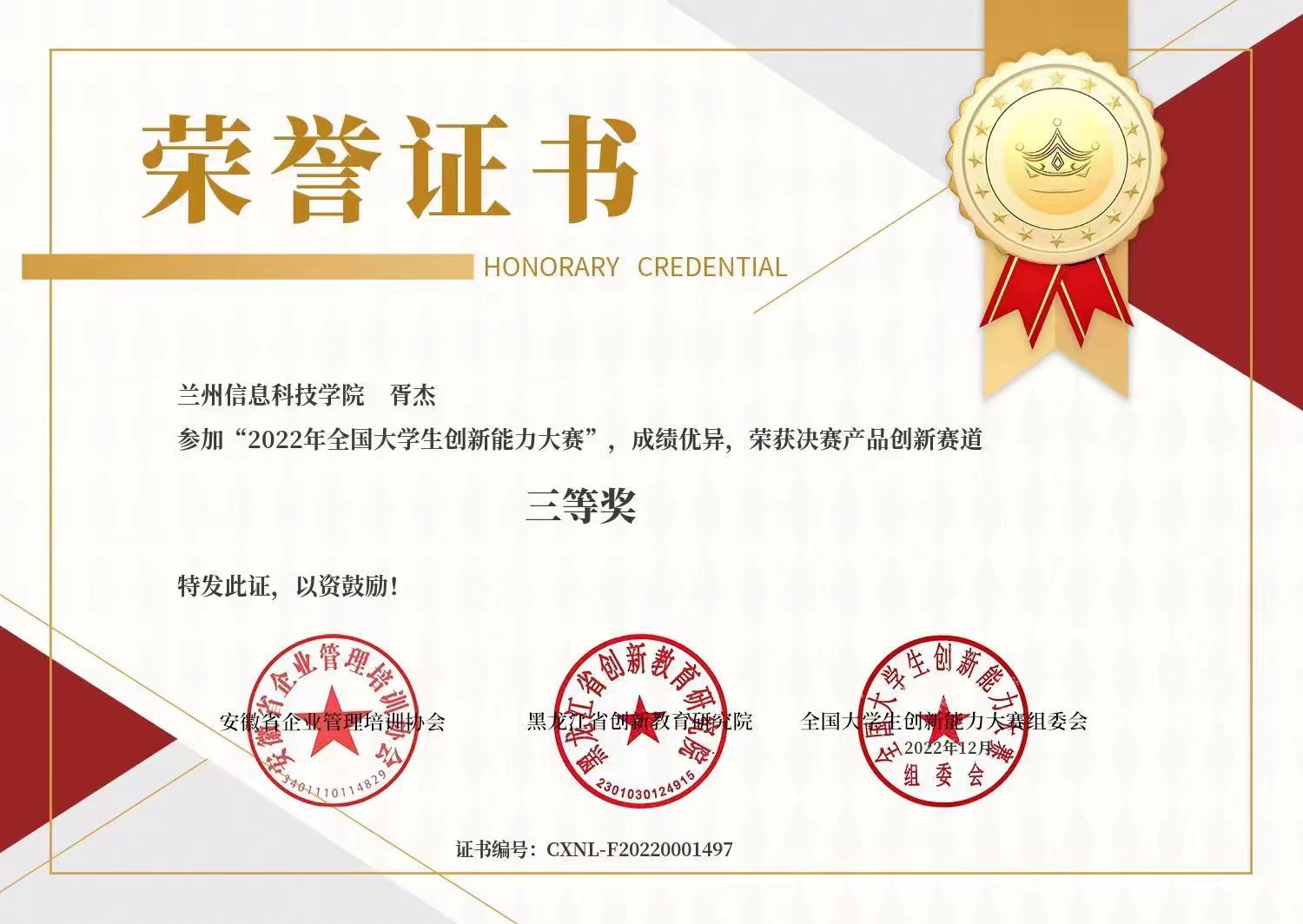 2022年全国大学生创新能力大赛决赛结果揭晓,beat365官网唯一入口创新创业协会首次派出的唯一参赛队伍一路过关斩将,通过了初赛、决赛与决赛答辩的重重考验,最终获得全国三等奖的好成绩。