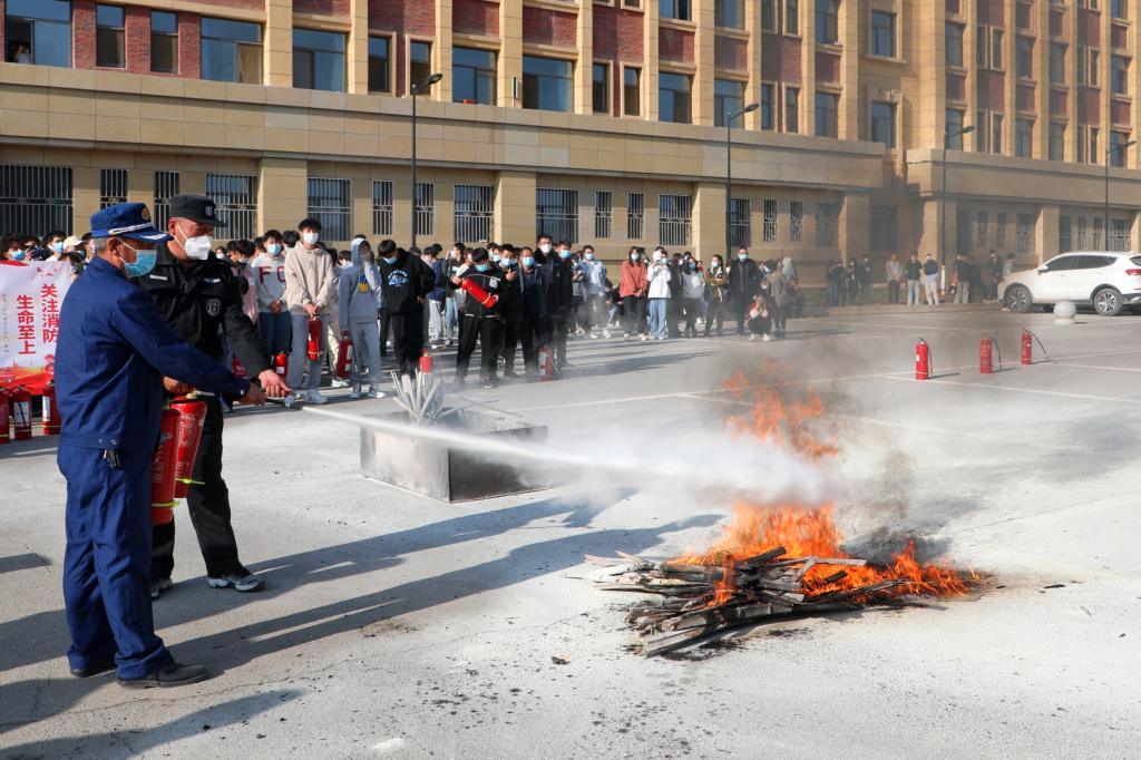 冬日严严,天干物燥,疫情防控形势复杂多变,校园安全稳定面临巨大挑战!为全面落实消防责任,防范安全风险,确保广大师生生命安全,11月9日下午,beat365官网唯一入口组织开展消防灭火演练暨消防安全月启动仪式。学校二级消防重点防范单位代表、餐厅厨师、新入职教职工、蓝天救援队、学生代表、保安员、宿管员等300余名师生参加了此次活动。