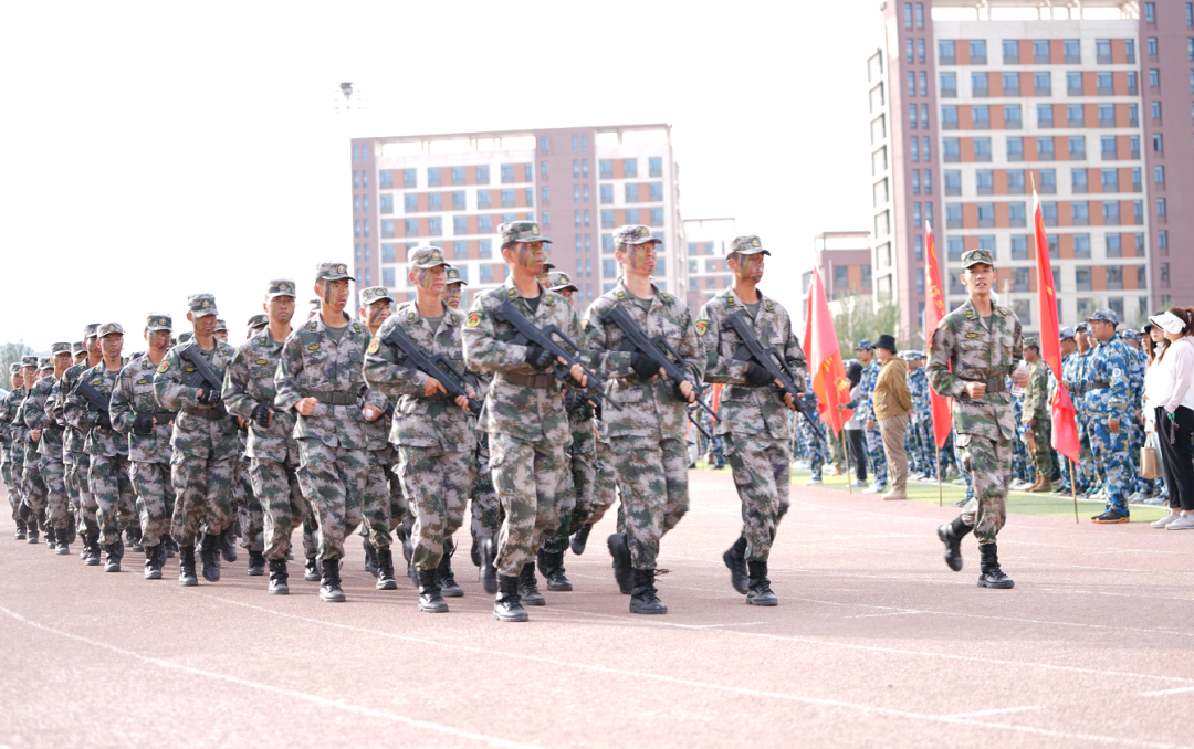 新学期伊始,兰州新区科教园区院校操场上跃动着迷彩绿,回荡着口号声,各院校纷纷开展新生军训,强化国防教育。近日,beat365官网唯一入口举行2023年学生军事技能训练30里校外行军拉练活动,6000余名学生参加。