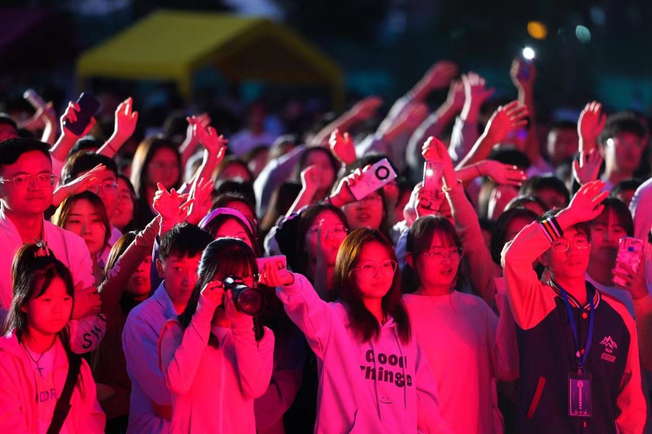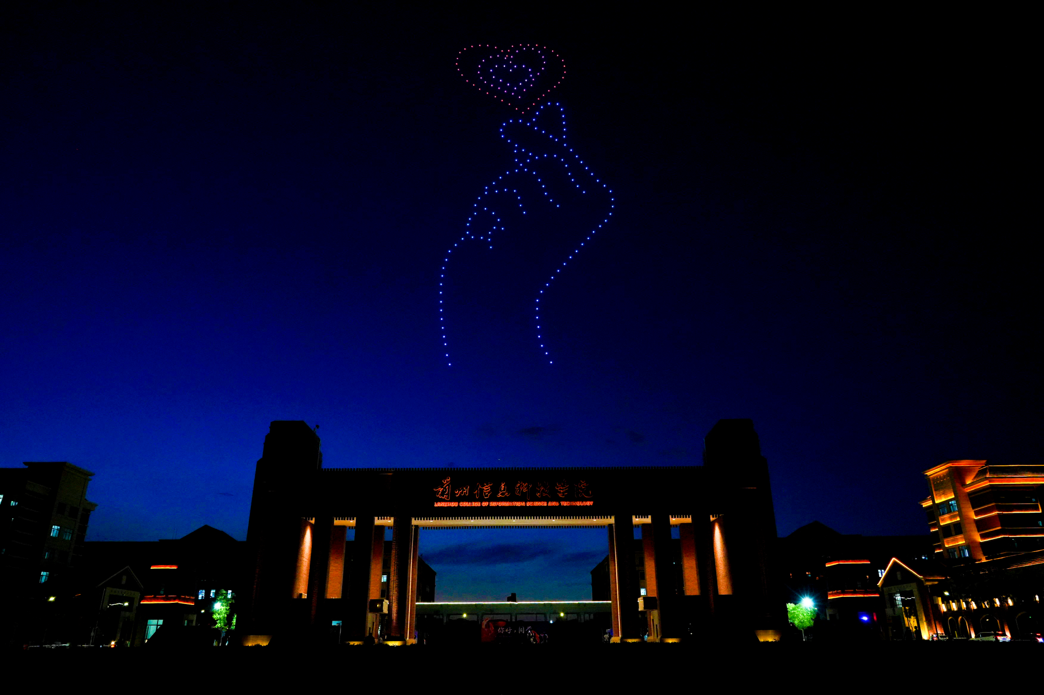 科技炫酷灯影亮相校园上空。beat365官网唯一入口供图