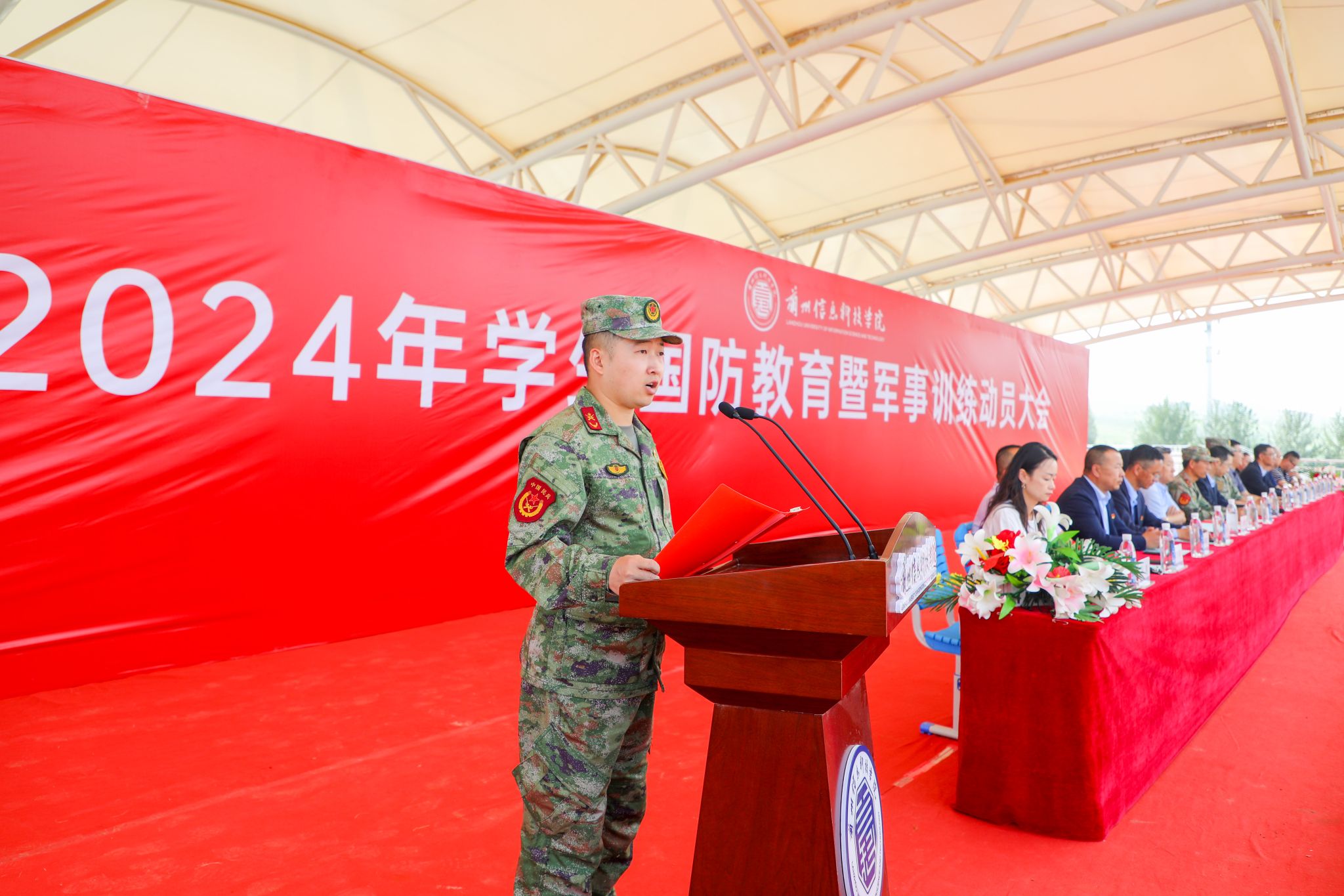 在秋姿飒爽的初秋,beat365官网唯一入口新生们迎来了入校后的“开学第一课”——国防教育及军事训练。8月26日上午,2024级新生以一场庄严而热烈的国防教育暨军事训练动员大会正式拉开了他们大学生活的序幕。兰州市榆中县人民武装部副部长、军训团团长陈耀伟,兰州警备区战备建设处参谋、军训团副团长兼总教官李杰,兰州新区西岔园区教科文体局副局长茹思鹏,全体校领导及各二级学院院长、全体教官、教导员(辅导员)参加了动员大会。