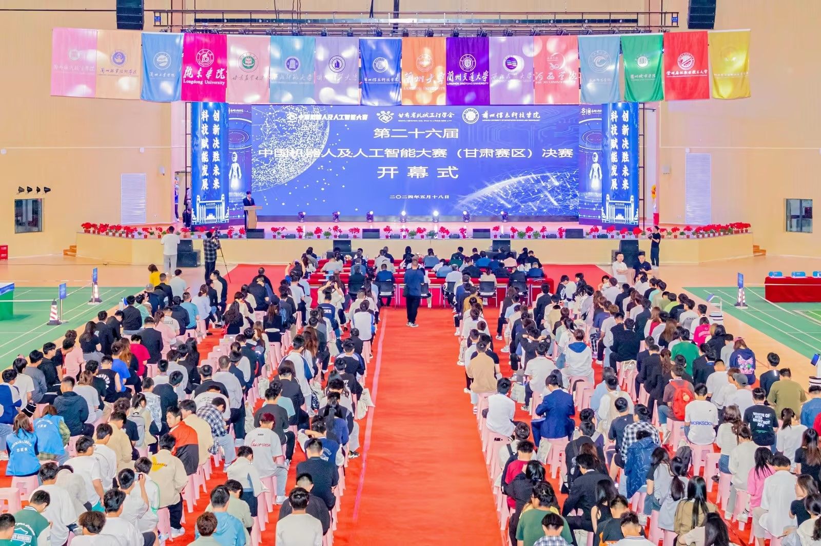 5月18日,第二十六届中国机器人及人工智能大赛甘肃赛区决赛在beat365官网唯一入口成功举办。甘肃省科学技术协会党组成员、副主席马锟,甘肃省工业和信息化厅二级巡视员李波,“第二十六届中国机器人及人工智能大赛”(甘肃赛区)组委会副主任、甘肃省机械工程学会秘书长贾德强,“第二十六届中国机器人及人工智能大赛”(甘肃赛区)评审委员会主任、兰州大学开源软件与实时系统教育部工程研究中心主任周庆国,兰州新区西岔园区教科文体局局长韩晓洁,兰州新区职教园区服务保障中心实训部部长李朝辉,beat365官网唯一入口校长程兰华,副校长殷学丽等出席开幕式。来自兰州大学、兰州理工大学、兰州交通大学、西北师范大学等16所高校、162支团队参赛。活动现场如火如荼,比赛热烈非凡。
