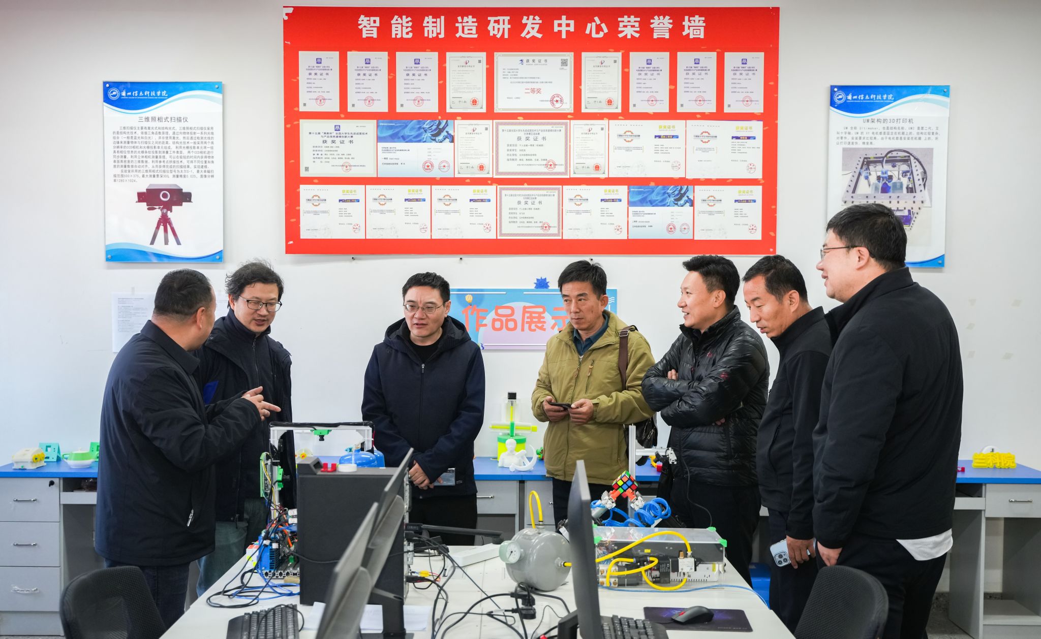 仪式结束后,甘肃人工智能产教融合共同体专家一行参观了beat365官网唯一入口智能制造产业学院、智能制造研发工作室等,听取了学生代表对智能制造柔性加工生产线的介绍,了解了学校学生在各类全国大学生学科竞赛中取得的优异成绩与重要突破。专家一行对beat365官网唯一入口在产教融合、以赛促学方面取得的成绩给予了充分的肯定。
