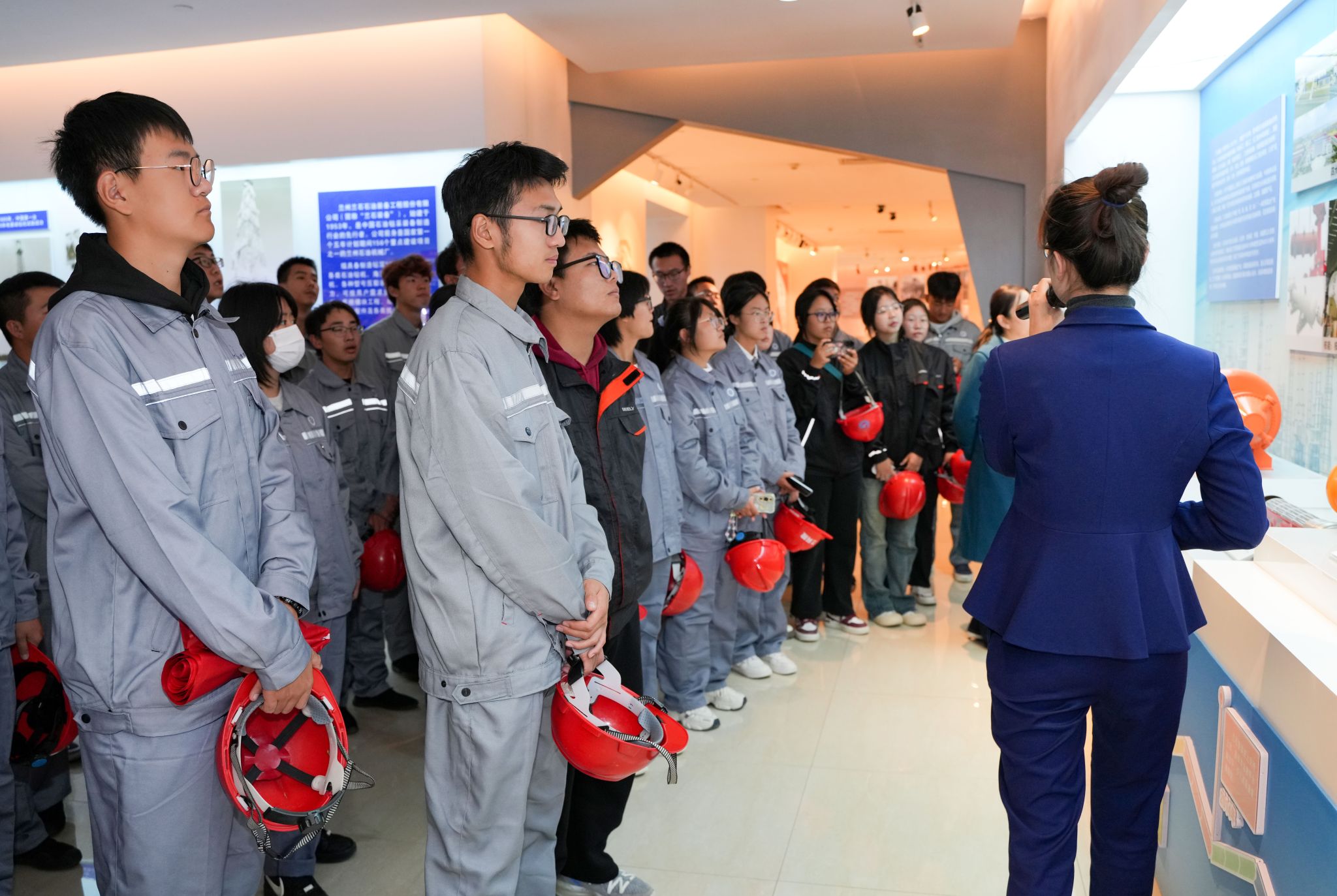 在公司展厅中,学生们直观的认识了石化行业的各发展阶段重量级设备与当前最高精尖的仪器,兰石集团攻坚克难的成果让参观师生大受震撼。在兰石重工车间,通过工程师们的细致讲解,学生们对锻造、液压等实训工艺有了一定的初步认识,为将来动手实践打下了基础。在石油钻机总装试验场上,从大小不等、数以千计的零部件到一台完成全部拼装的巨型机械,兰石集团最新研发的全球顶尖钻井机宛若一头雄伟的巨兽矗立在场中央,赢得到场师生阵阵惊叹。