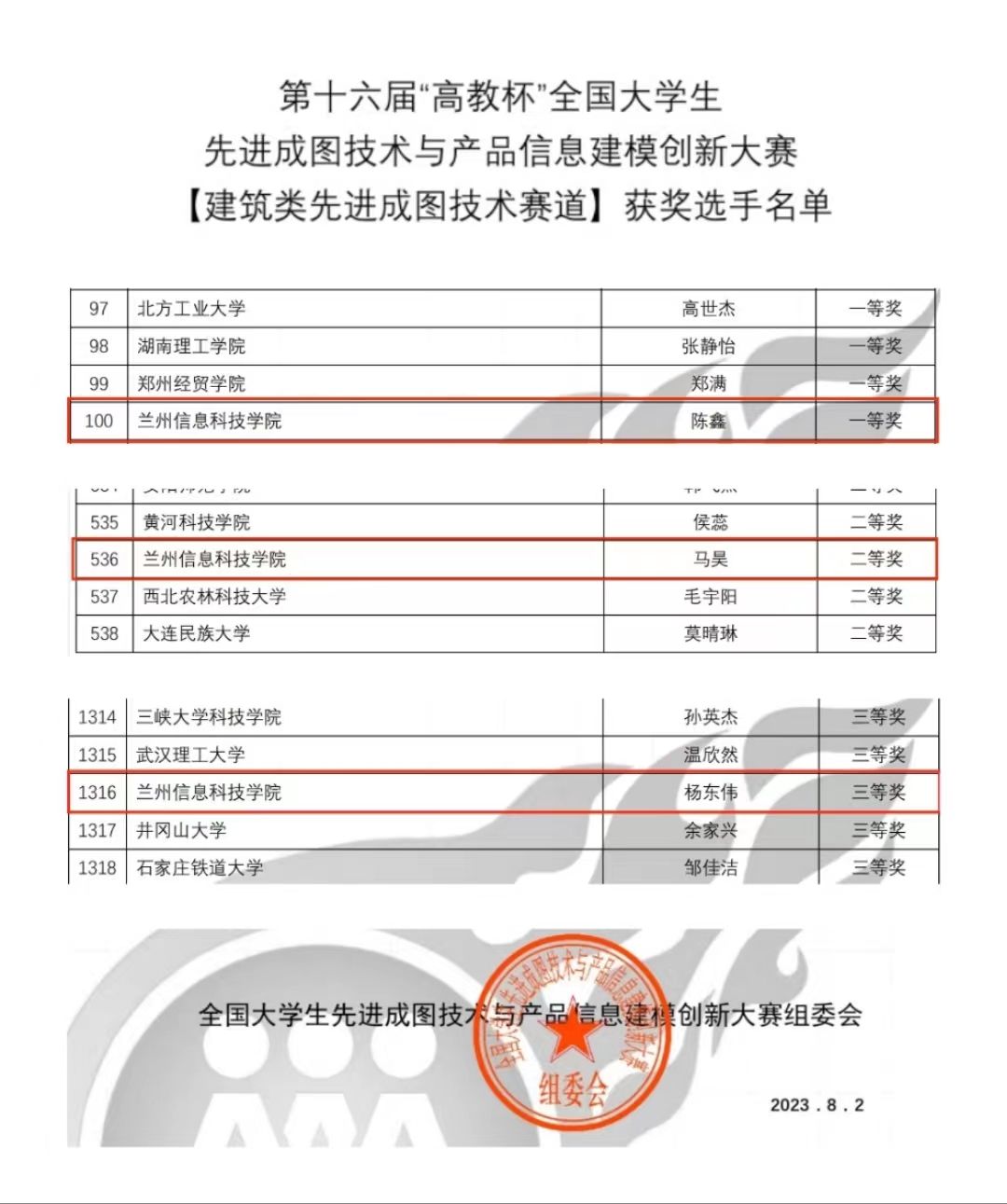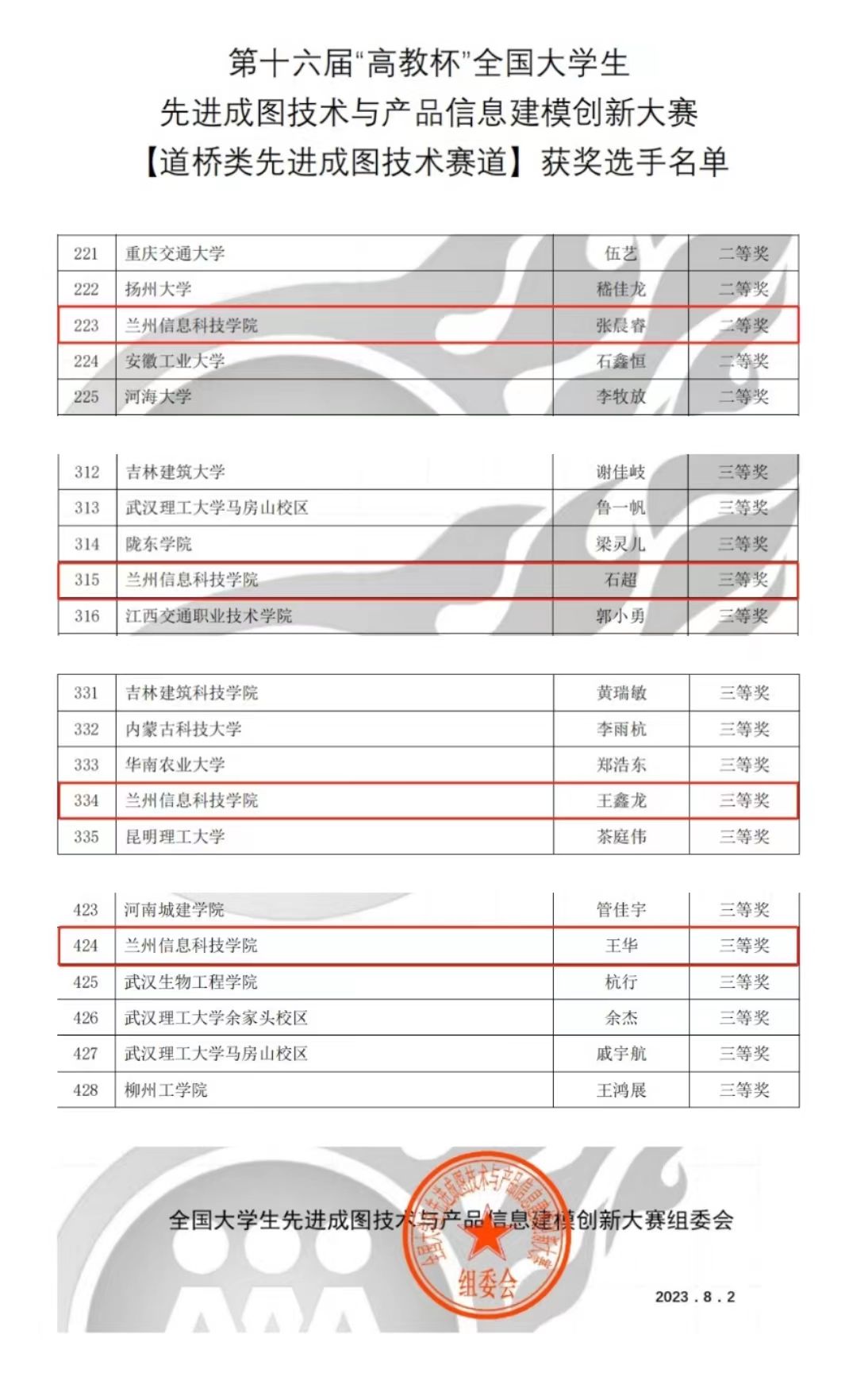 骄人成绩的获得离不开学校深化落实OBE教学理念,着力培养应用型人才的策略指引。本次竞赛备战以来,学校以“严要求,高质量”督促相关学院做好选手选拔和教师指导工作,通过层层遴选,最终派出36名优秀学子组成四支参赛队伍分别参加了机械类、道桥类、建筑类、水利类四大项比赛。其中,机械类、建筑类、道桥类获得团体类建模三等奖3项;建筑类突破往年成绩,获个人全能一等奖1项,二等奖1项,三等奖1项;机械类获个人全能二等奖3项,三等奖3项;道桥类获个人全能二等奖1项,三等奖3项;水利类获个人全能三等奖1项。