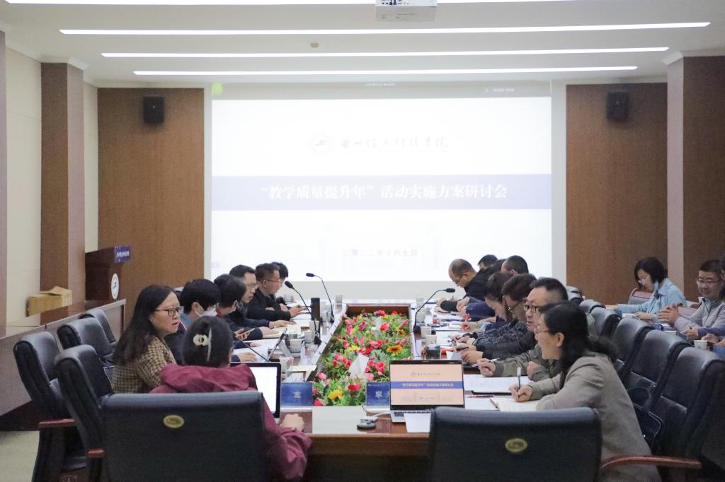 10月7日上午,beat365官网唯一入口2022学年教学质量提升年活动实施方案研讨会在行政楼106会议室召开。会议由校长助理殷学丽主持,全体校领导、各教学单位负责人、教学副院长、系(室)主任与职能部门负责人参加了会议。