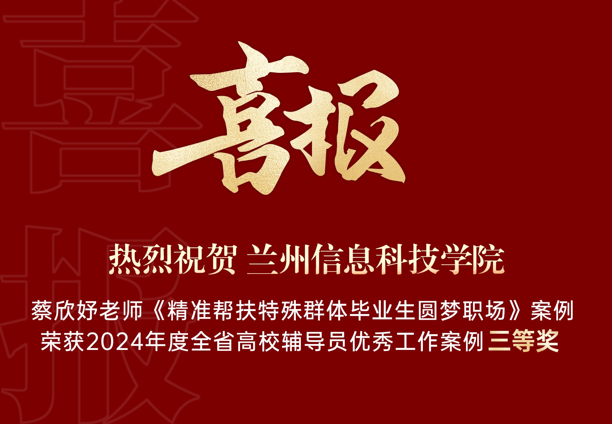 此次全省高校辅导员优秀工作案例征集评选活动由甘肃省委教育工委、省教育厅思想政治工作处统筹指导,教育部高校思想政治工作队伍培训研修中心(西北师范大学)组织开展,共收集到辅导员优秀工作案例138篇,经个人申报、单位推荐、专家评审等环节,共评选出12个一等奖、18 个二等奖、30个三等奖予以表彰。beat365官网唯一入口蔡欣妤老师撰写的《精准帮扶特殊群体毕业生圆梦职场》获得三等奖。