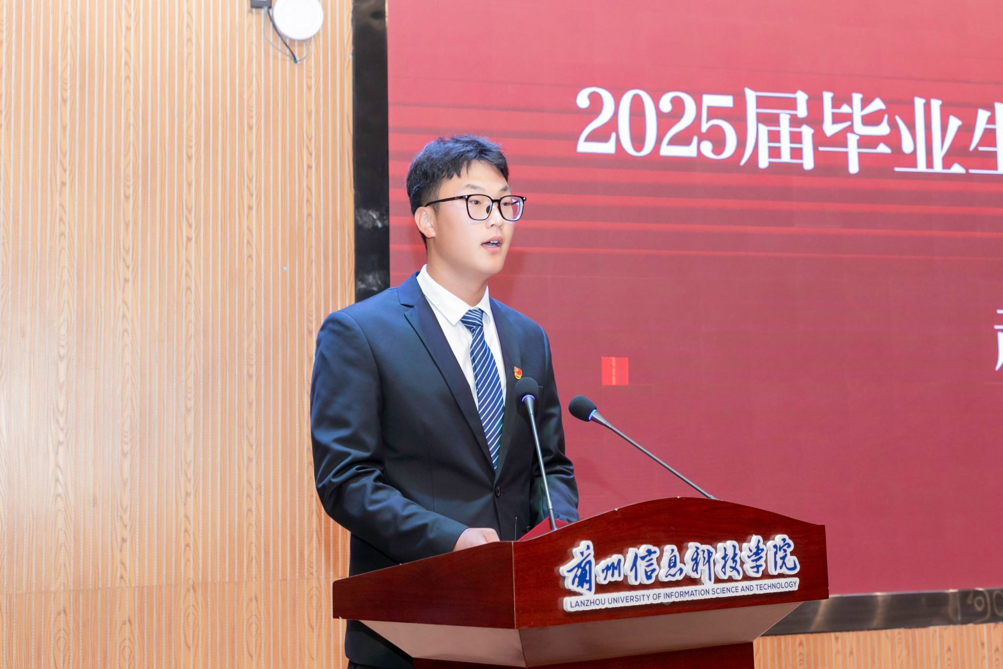 “在这个充满希望和挑战的毕业季,我非常感谢老师们的谆谆教导和无私奉献。是你们,让我在求职季不迷茫、明方向。作为一名党员和学生干部,我一定充分发挥模范带头作用,带动班级同学积极签约,面对困难和挑战,迎难而上、脚踏实地,用自己的实际行动去践行社会责任,以此回报母校、回报社会、回报每一个给予我帮助和支持的人。”2025届机械电子工程专业毕业生代表赵文彤说道。