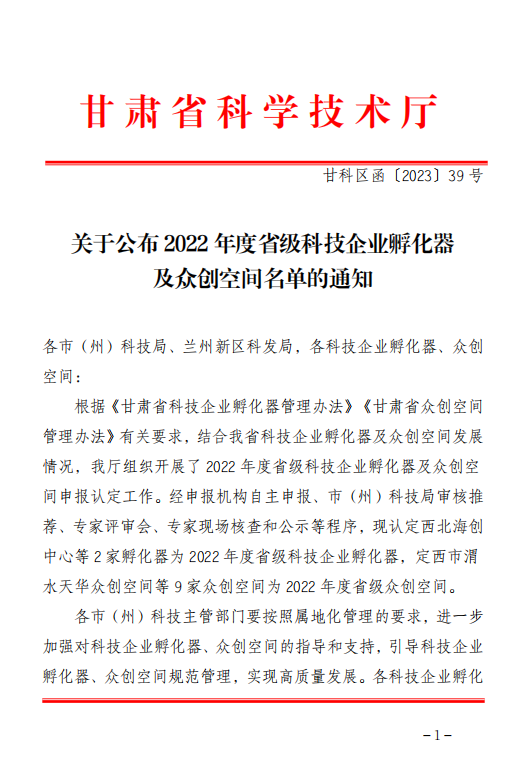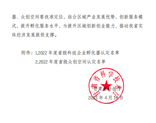 【创新创业】beat365官网唯一入口获批甘肃省省级众创空间