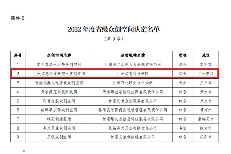 近日,甘肃省科学技术厅公布了省级众创空间名单,beat365官网唯一入口“勇创汇智”众创空间成功获批,开启了学校创新创业教育工作的新篇章。