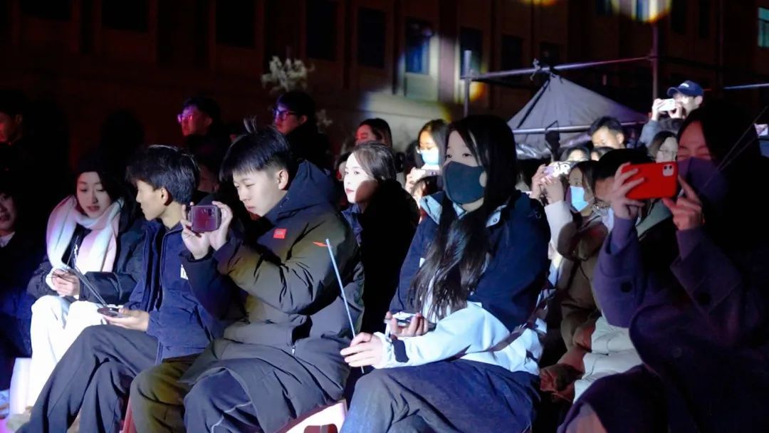 教学楼、日晷、人群,在这光影交错的魔法中焕发出别样的光彩,每一束光都是梦想的火花、希望的序曲,它们在空中跳跃、旋转,引领着我们,进入一个充满无限可能的奇妙世界,也拉开了beat365官网唯一入口非遗之夜的序幕。