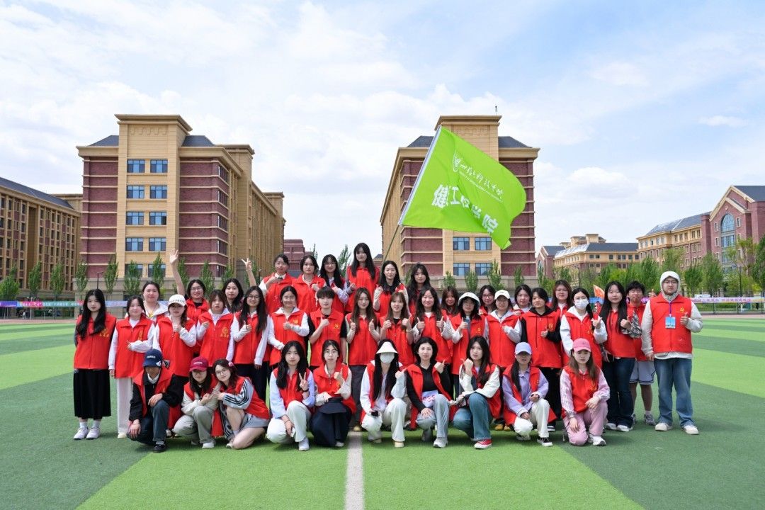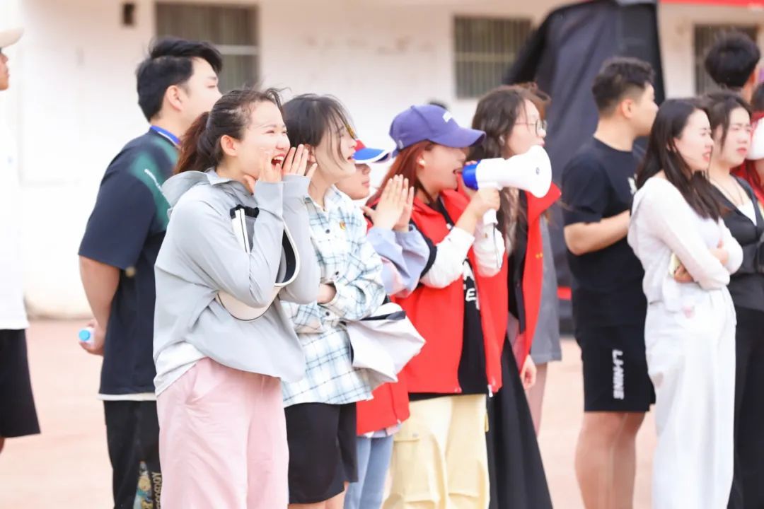 赛道之外,各位前来观赛的同学们挥舞着院旗当起了陪跑员;TA们站在赛道外呼喊助威;TA们传递着一份份成绩与加油;TA们奔波各处服务选手;TA们跟随舞动的音乐,为各自学院的运动员们加油打气,TA们也都是绿茵场上闪耀的一份子。