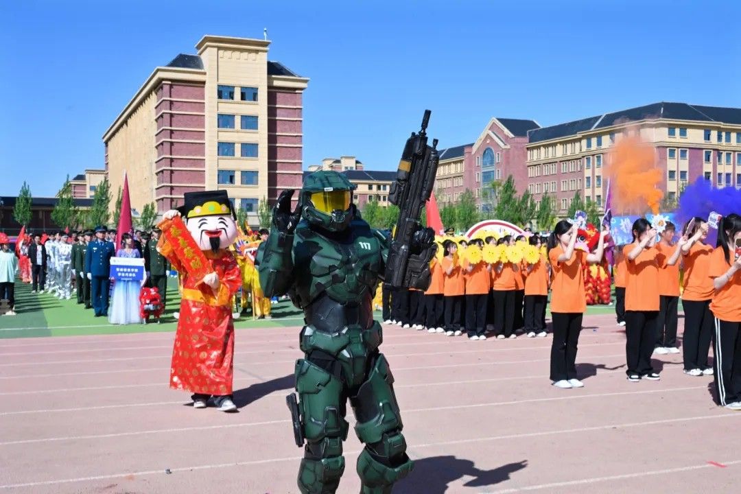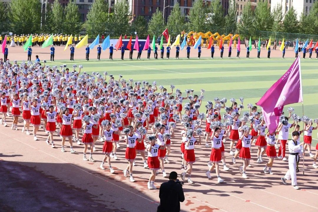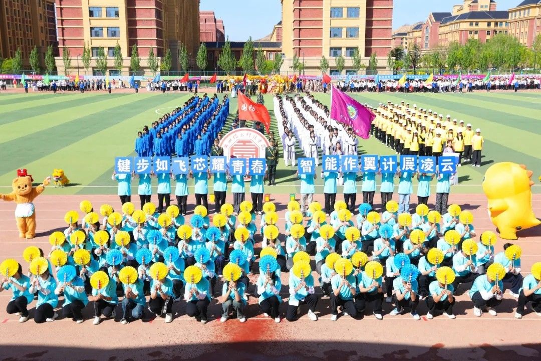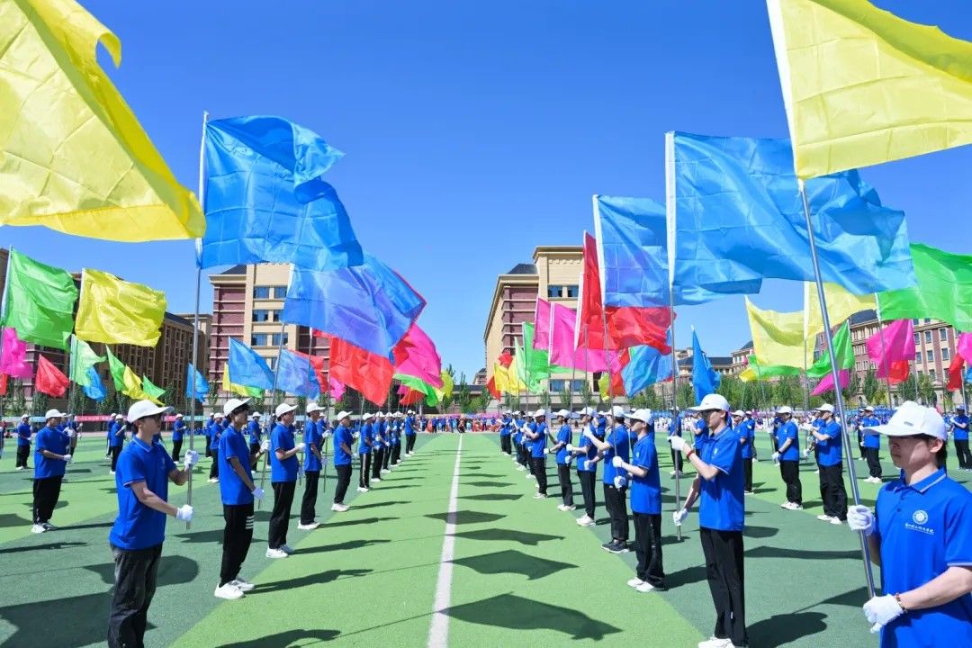手持彩旗,步伐矫健,如黄河奔涌般充满力量,如彩虹绚烂般闪耀赛场。红色般赤诚热情、蓝色般沉稳踏实;粉色般自信张扬、绿色般积极向上。每一次挥动,都是对胜利的渴望;每一次奔跑,都是对未来的憧憬。