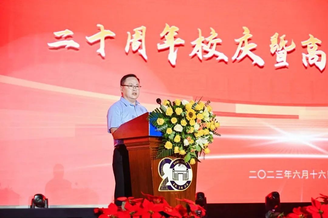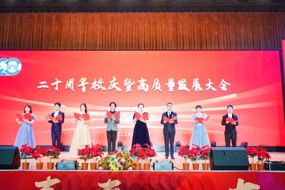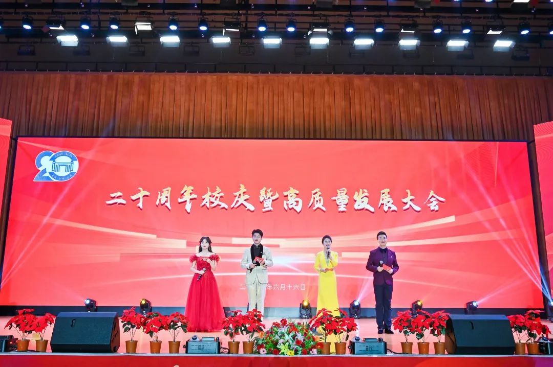 为庆祝beat365官网唯一入口建校二十周年,6月16日上午,学校20周年校庆暨高质量发展大会在学校体育馆举行。