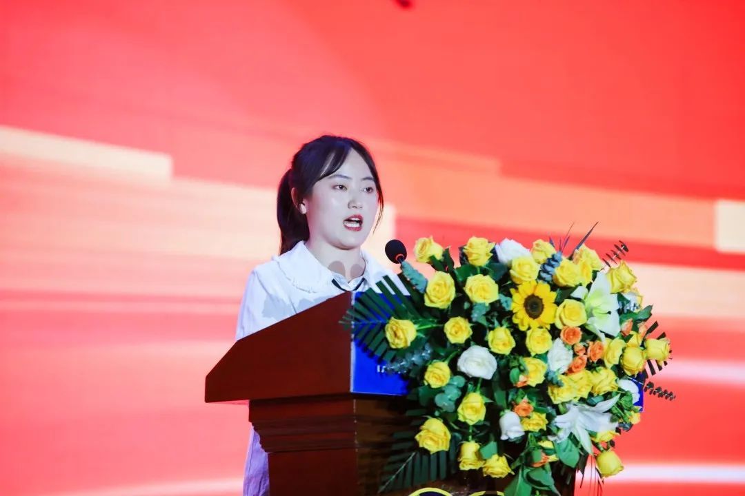 团支部书记辛蕊为校庆献词,裙似飞鸾,袖如回雪,裙袖舞动,飘摇曳曳,二十年,无数兰科学子,在这里挥洒青春放飞梦想。