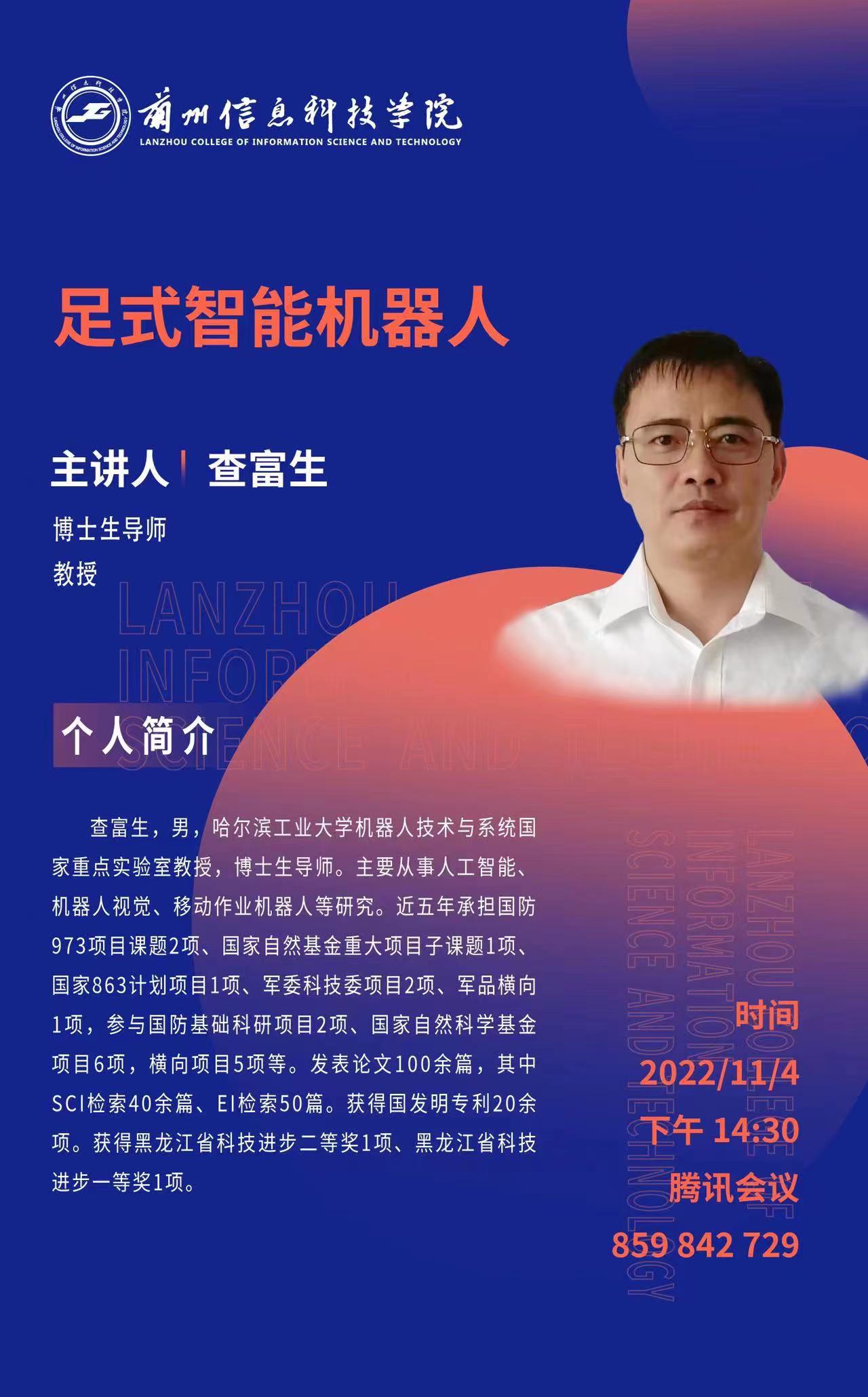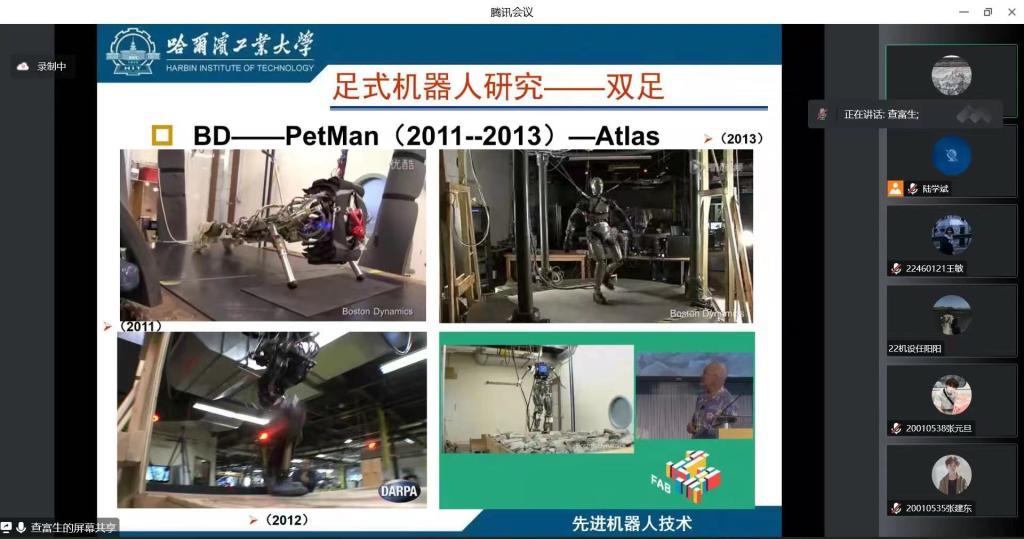 11月4日,哈尔滨工业大学博士生导师查富生教授应邀为beat365官网唯一入口师生作学术专题报告,讲座主题为《足式智能机器人》。机电工程学院全体无授课任务教师,相关专业300余名学生以线上会议的方式聆听了此次专题讲座。